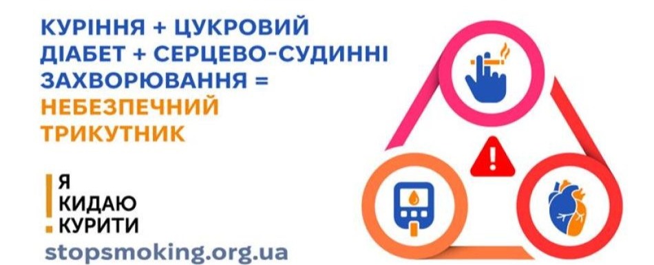 КУРІННЯ + ЦУКРОВИЙ ДІАБЕТ + СЕРЦЕВО-СУДИННІ ЗАХВОРЮВАННЯ = НЕБЕЗПЕЧНИЙ ТРИКУТНИК