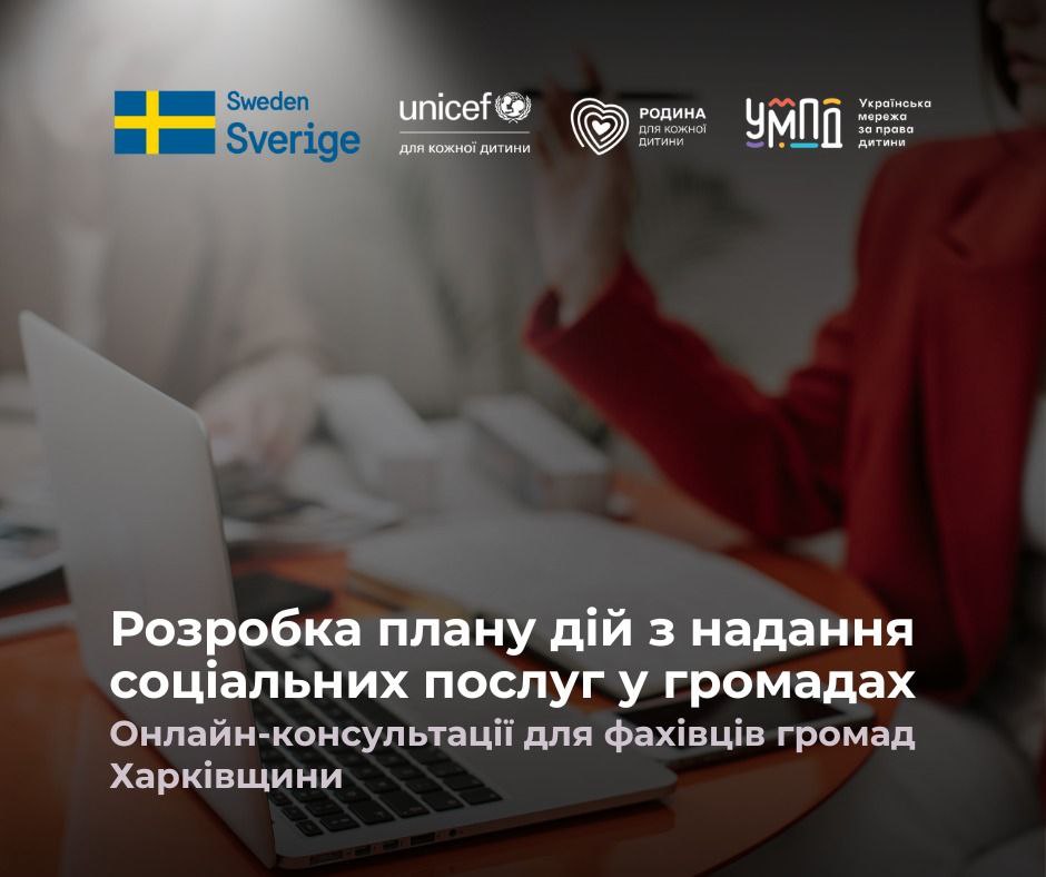 Консультації проведені ГС «Українська мережа за права дитини» у межах реалізації проєкту UNICEF Ukraine «Мінімальний пакет інтегрованих соціальних послуг для сімей з дітьми» за підтримки уряду Швеції.