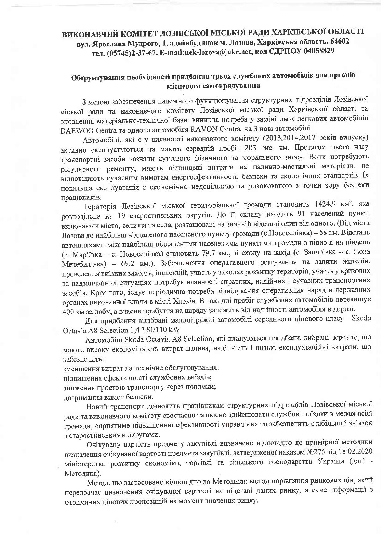 Обґрунтування необхідності придбання трьох службових автомобілів для органів місцевого самоврядування
