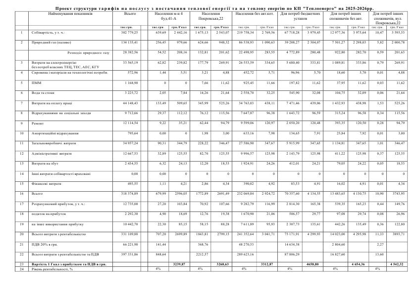 Послуга з постачання теплової енергії для населення (вул. Покровська 22) |