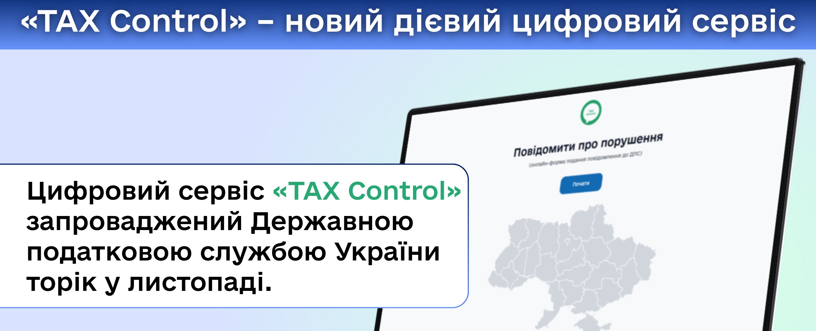 Державна податкова служба України запустила цифровий сервіс «ТAX Control» − сучасний інструмент для оперативного виявлення порушень у сфері торгівлі, послуг чи громадського харчування