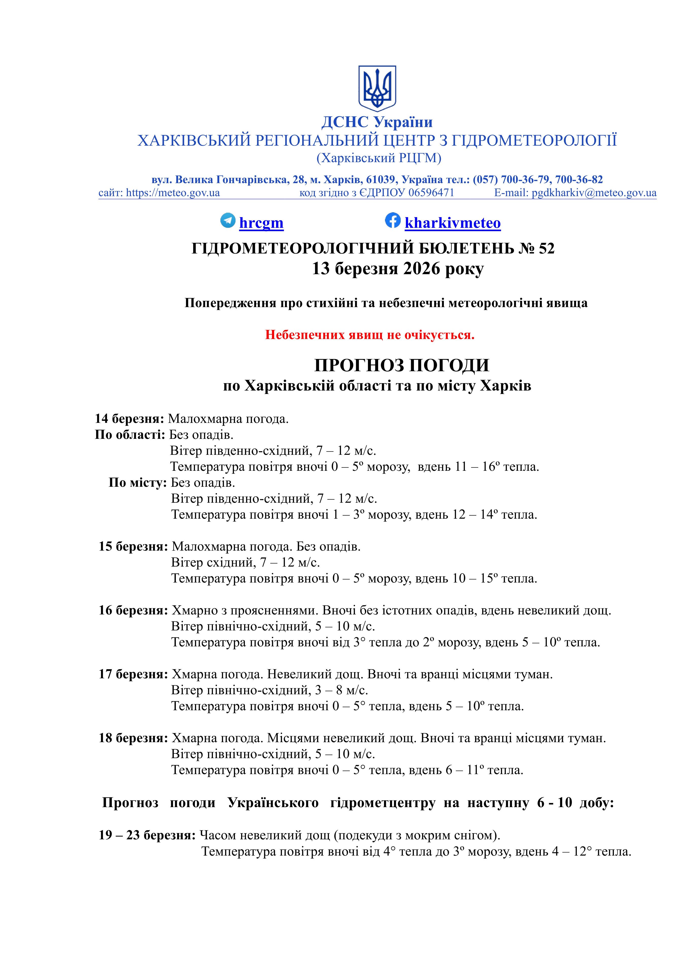 Прогноз погоди по Харківській області та клас пожежної небезпеки